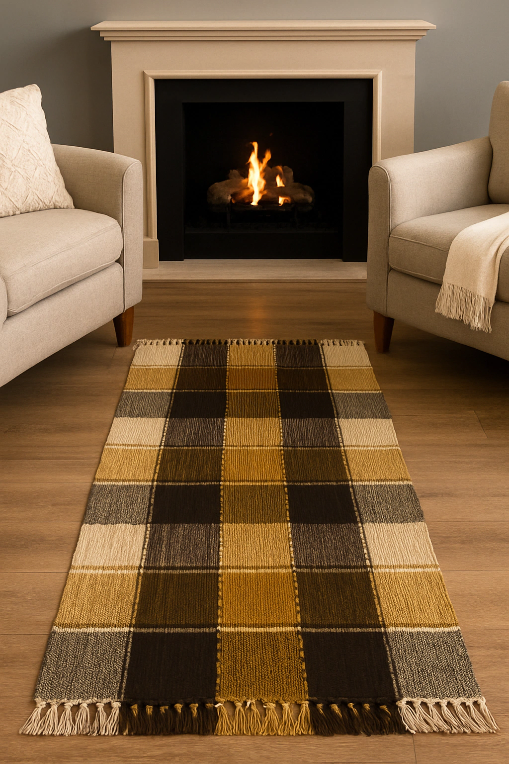 Dale un toque cálido y elegante a tu hogar con esta alfombra de cuadros confeccionada en algodón 100%. Sus medidas de 90 cm de ancho por 150 cm de largo la hacen ideal para cualquier ambiente, ya sea living, dormitorio o escritorio.