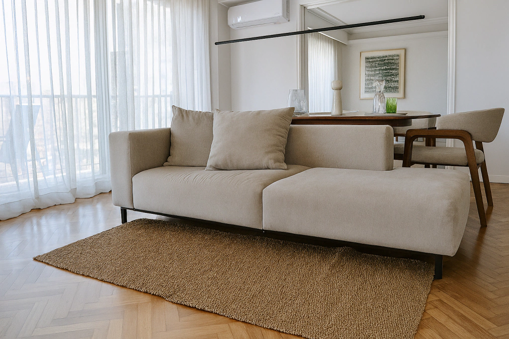 Ideal para darle un toque natural y cálido a tus ambientes. Esta alfombra de yute mide 120x180 cm, perfecta para living, comedor o dormitorio.