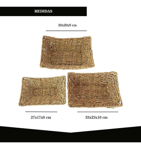 Medidas: - Grande: 33x23x10 cm - Mediana: 30x20x9 cm - Chica: 27x17x8 cm