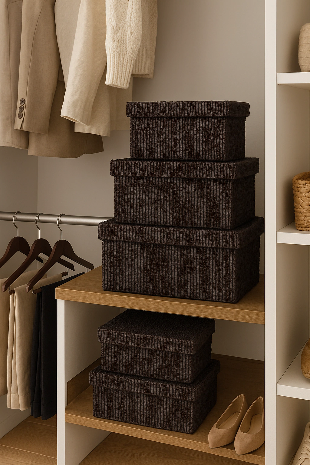 Organiza tu hogar con este elegante set de cajones. Perfecto para almacenar y mantener tus espacios ordenados. Su diseño en mimbre aporta calidez y estilo a cualquier ambiente.