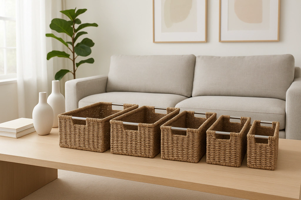 Set de 5 Canastos con Manijas en Seagrass Natural