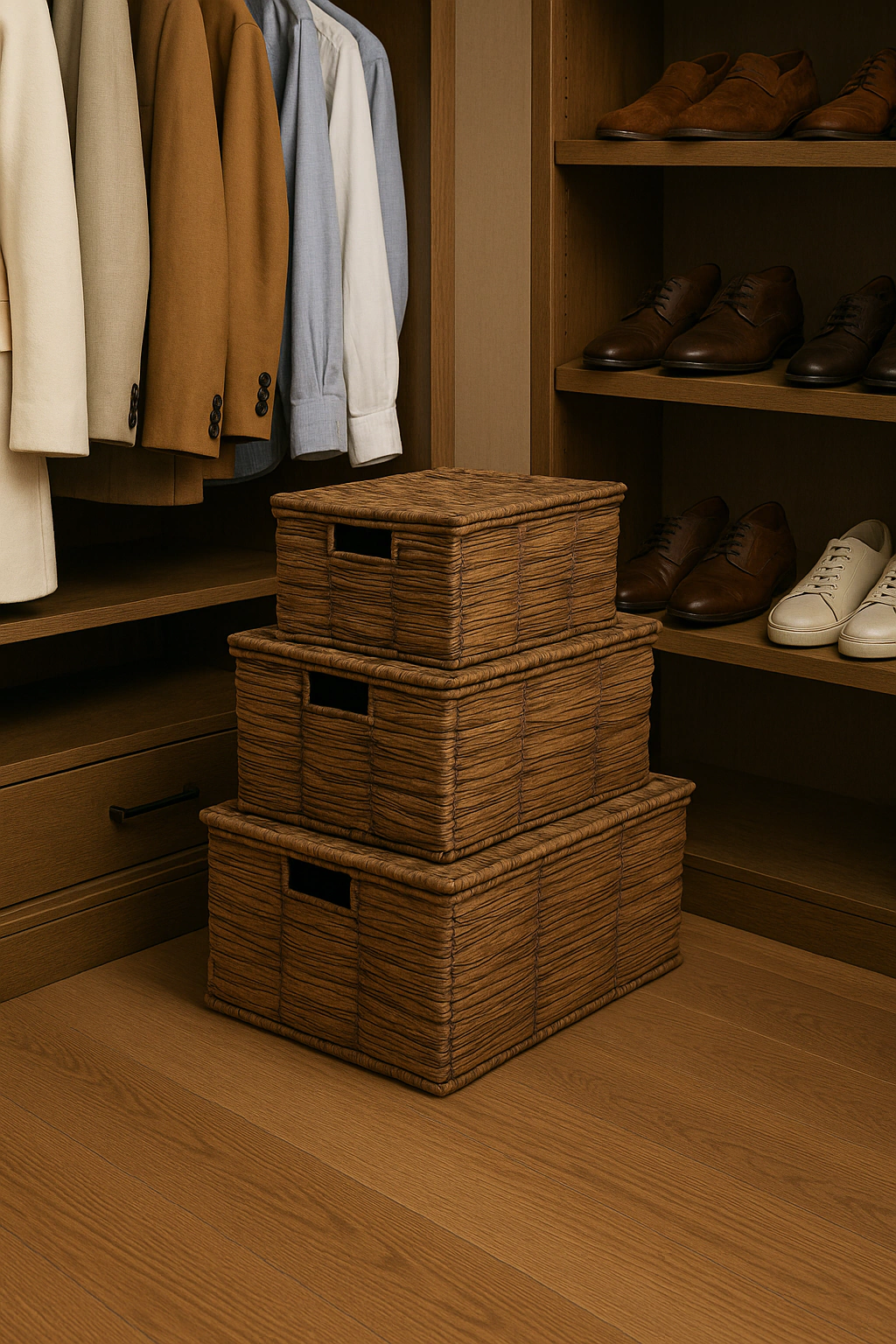 Consigue un estilo elegante y funcional para tu hogar con este set de canastos con tapa. Perfectos para organizar y decorar, estos canastos son ideales para cualquier ambiente.