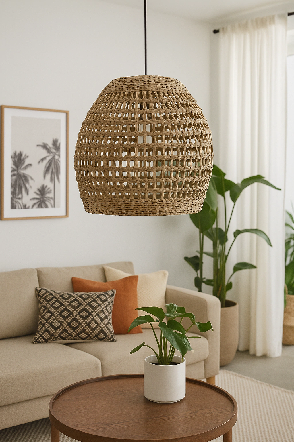 Esta lámpara colgante está fabricada en bambú natural, aportando un estilo cálido y elegante a cualquier ambiente. Perfecta para iluminar y decorar espacios interiores con un toque de distinción y naturaleza.