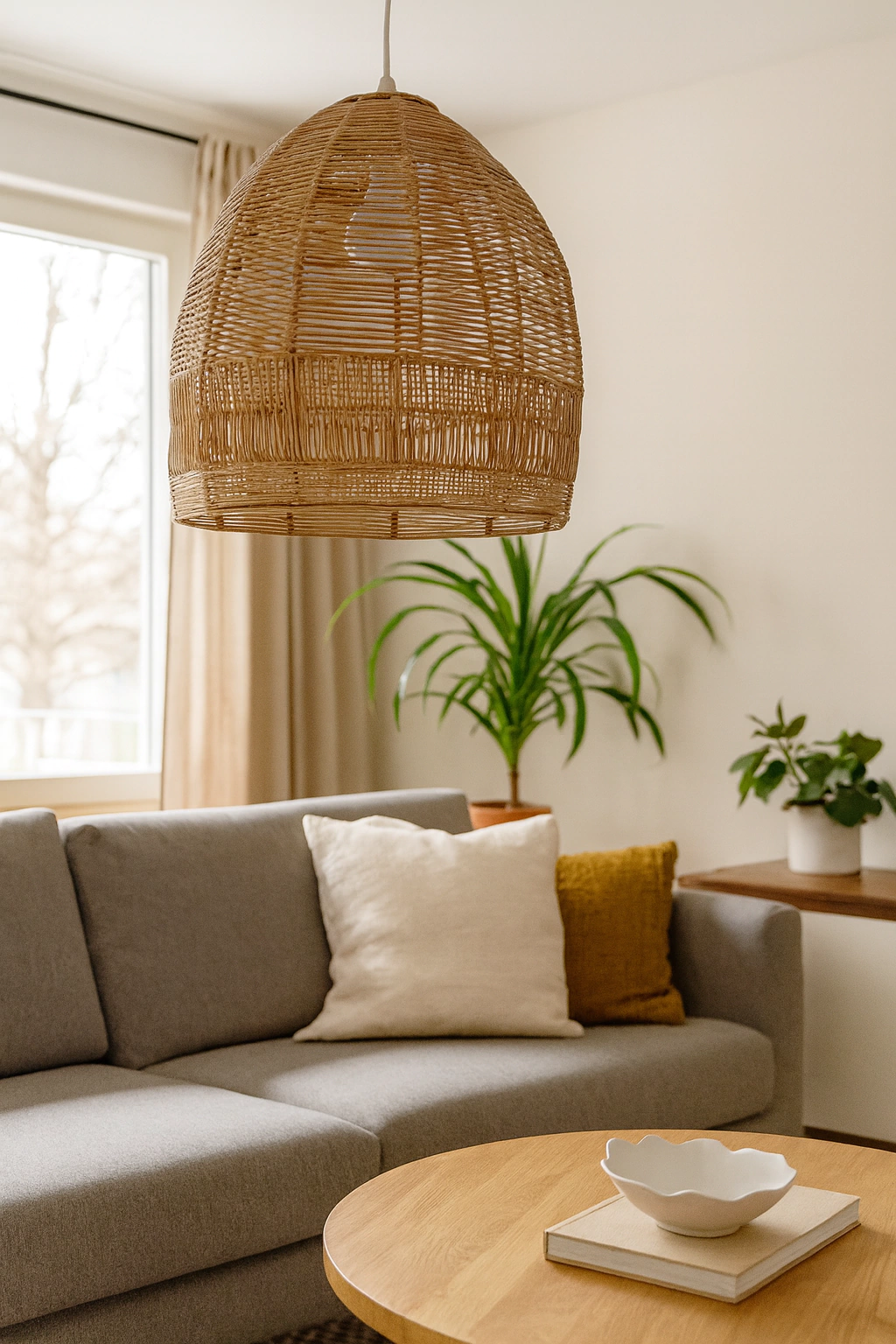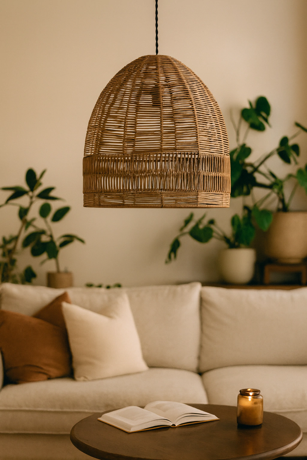 Esta lámpara de diseño natural y elegante está elaborada en bambú, un material sustentable que aporta calidez y estilo a cualquier ambiente. Ideal para iluminar y decorar espacios interiores con un toque artesanal y moderno.