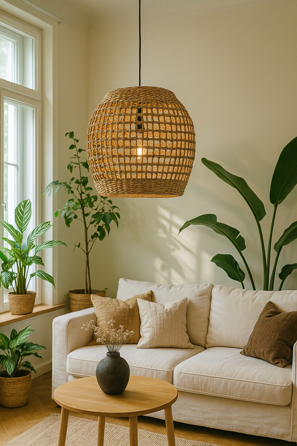 Esta lámpara colgante elaborada en bambú aporta un toque natural y elegante a tus espacios. Ideal para iluminar y decorar ambientes con un estilo cálido y acogedor.